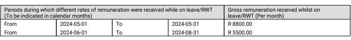 • Following a salary change, for the next two months, the employee then earned R5 500 per month.